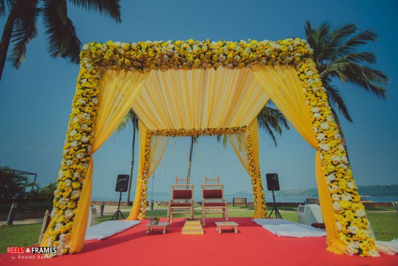 Gorgeous south Indian wedding mandaps – South Indian weddings have bridal wedding inspiration everywhere. Right from beautiful kanjeevarams to lovely temple jewellery, they have it all. But do you know what we love? Gorgeous south-Indian wedding mandaps! You can take all the décor inspiration you want from these awesome outdoor mandaps.